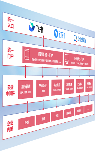 对协作平台提供支持服务,,,支持企业应用与协作平台对接,,,,包含组织同步、、、消息集成、、待办集成等。。。。支持目前主流的协作平台:钉钉、、、企微和飞书。。